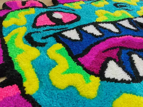 Tapete hecho con tufting gun y estambre de acrílico.